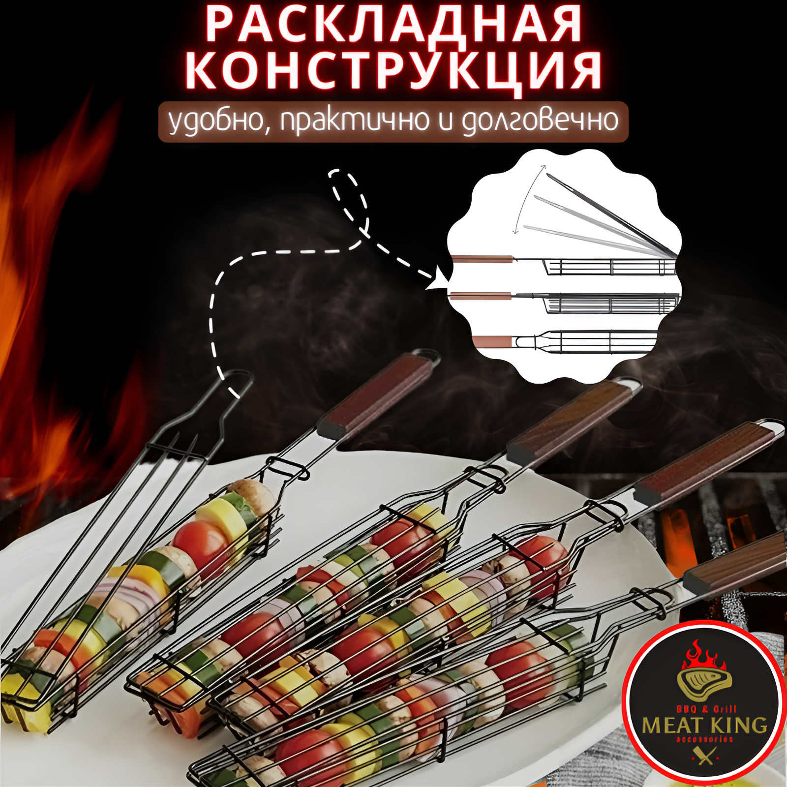 Отзывы на Узкая решетка для мангала и гриля для овощей MEAT KING 49x5x3 см, набор 2 шт. / решетка гриль для барбекю, шампур
