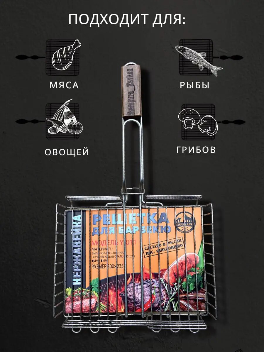 Решетка гриль LESNIKOVA, для птицы, металл, деревянная рукоять, 35x26 см