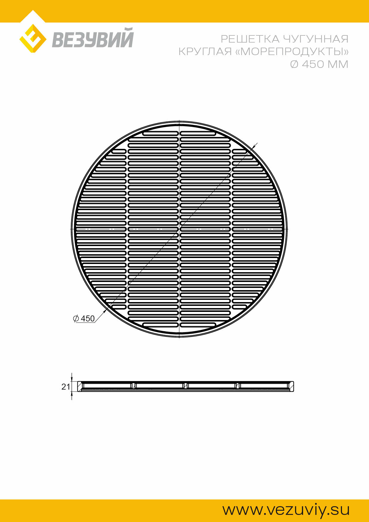 10 цен на Решетка ВЕЗУВИЙ чугунная круглая " МОРЕПРОДУКТЫ " диаметр 450 мм