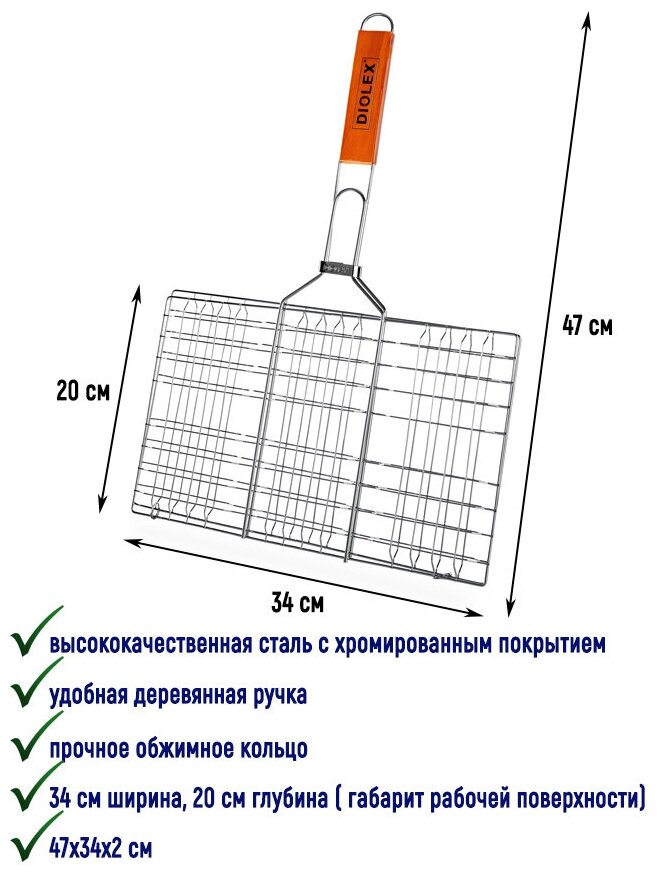Отзывы на Решетка для гриля , нержавеющая сталь, хромированная, двойная, 34 см х 22 см