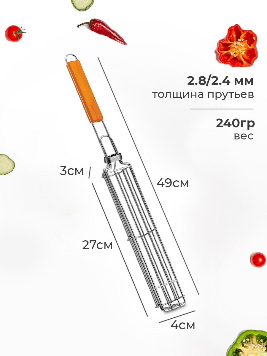 Решетка-гриль для колбасок , сосисок , грибов и овощей , хромированная сталь 27x4см информация: