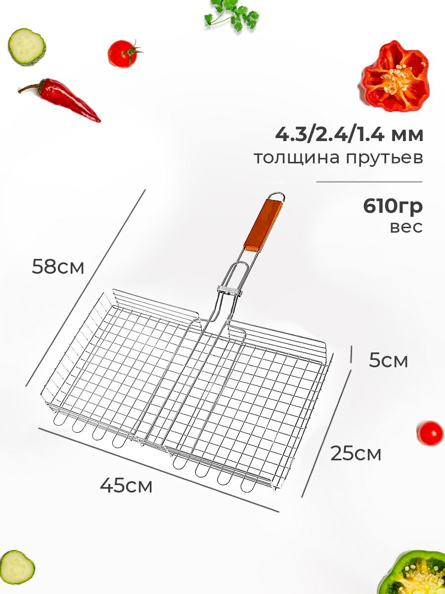 Решетка гриль LESNIKOVA, для птицы, металл, деревянная рукоять, 35x26 см