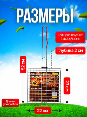 Решетка для мангала шашлыка, глубокая со съемная ручкой, решётка гриль 30х25 см 1 207 ₽