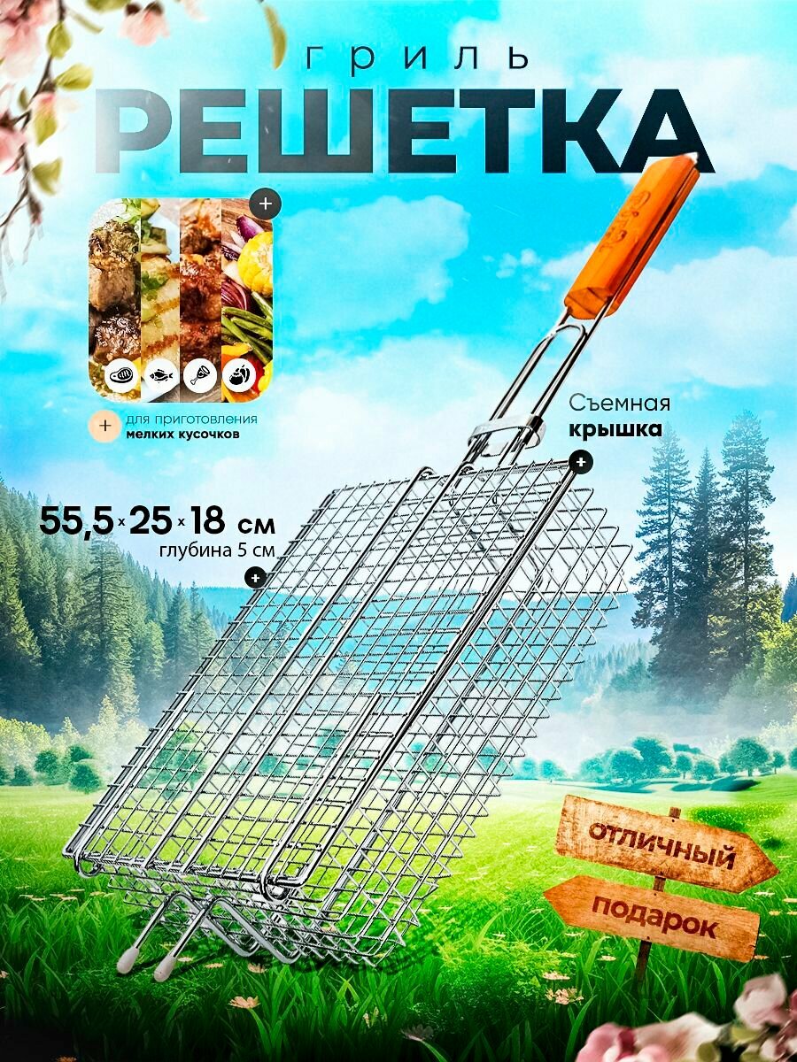 Решетка для гриля глубокая для мелких кусочков со съемной крышкой на мангал 25х18 см информация: