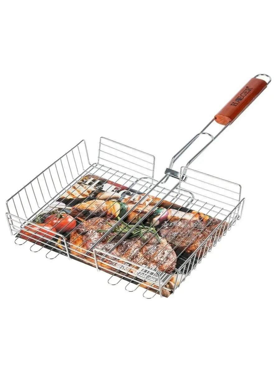 Решетка гриль LESNIKOVA, для птицы, металл, деревянная рукоять, 35x26 см