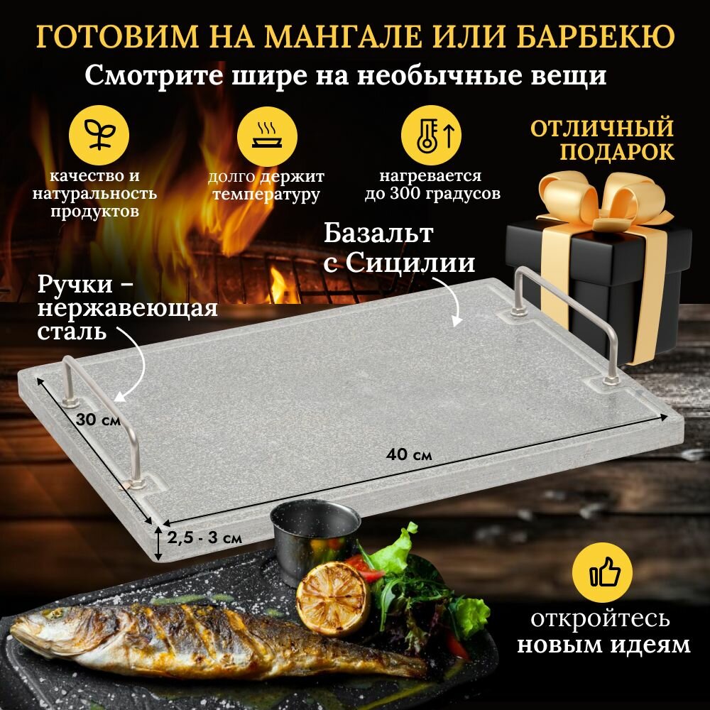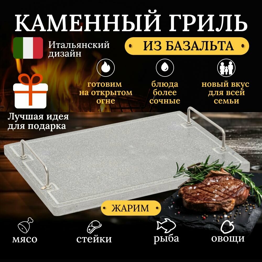 Лучший. Каменный гриль с ручками для гриля и мангала решетка. "EТNA UNO" Вулканический камень 400х300 мм информация: