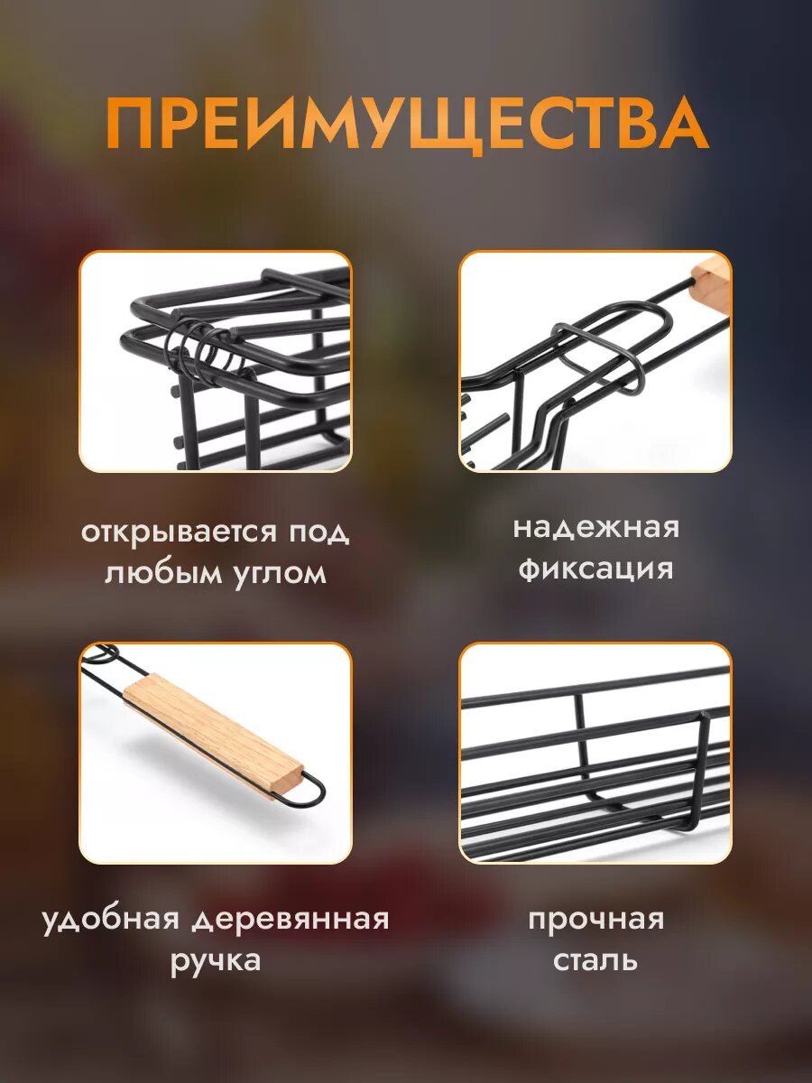 Решетка для мангала и гриля, для овощей, с антипригарным покрытием, деревянная рукоять информация: