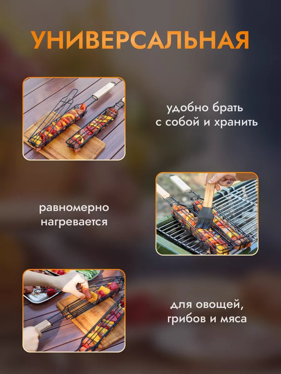 Отзывы на Решетка для мангала и гриля, для овощей, с антипригарным покрытием, деревянная рукоять