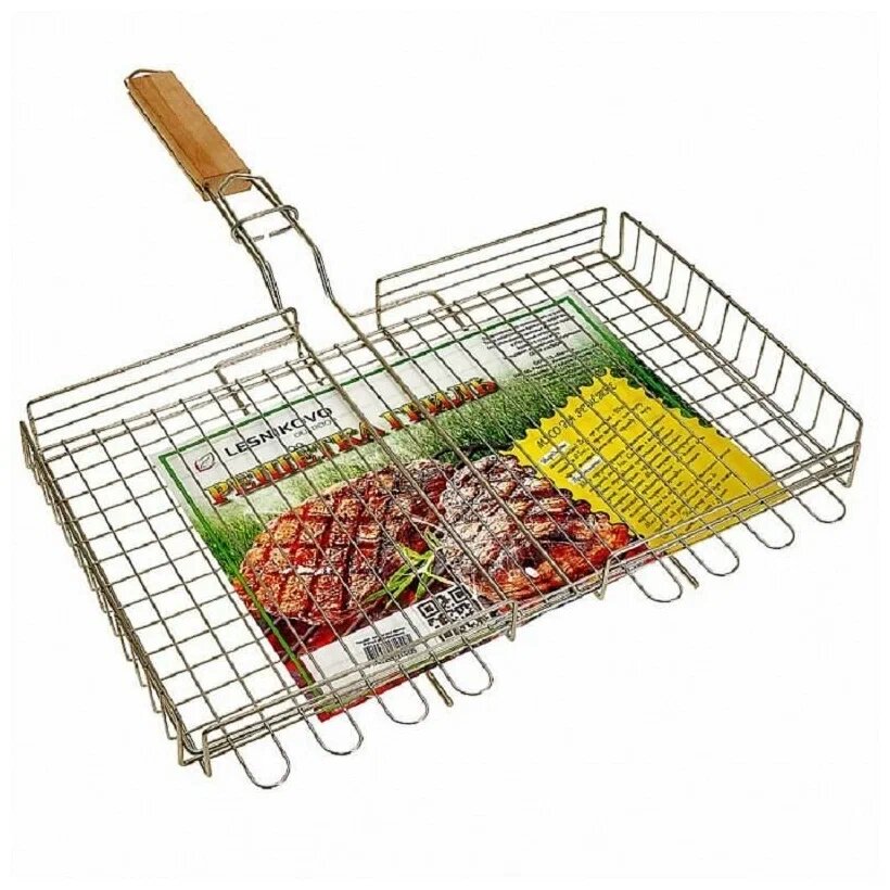 Решетка гриль LESNIKOVA, для птицы, металл, деревянная рукоять, 35x26 см