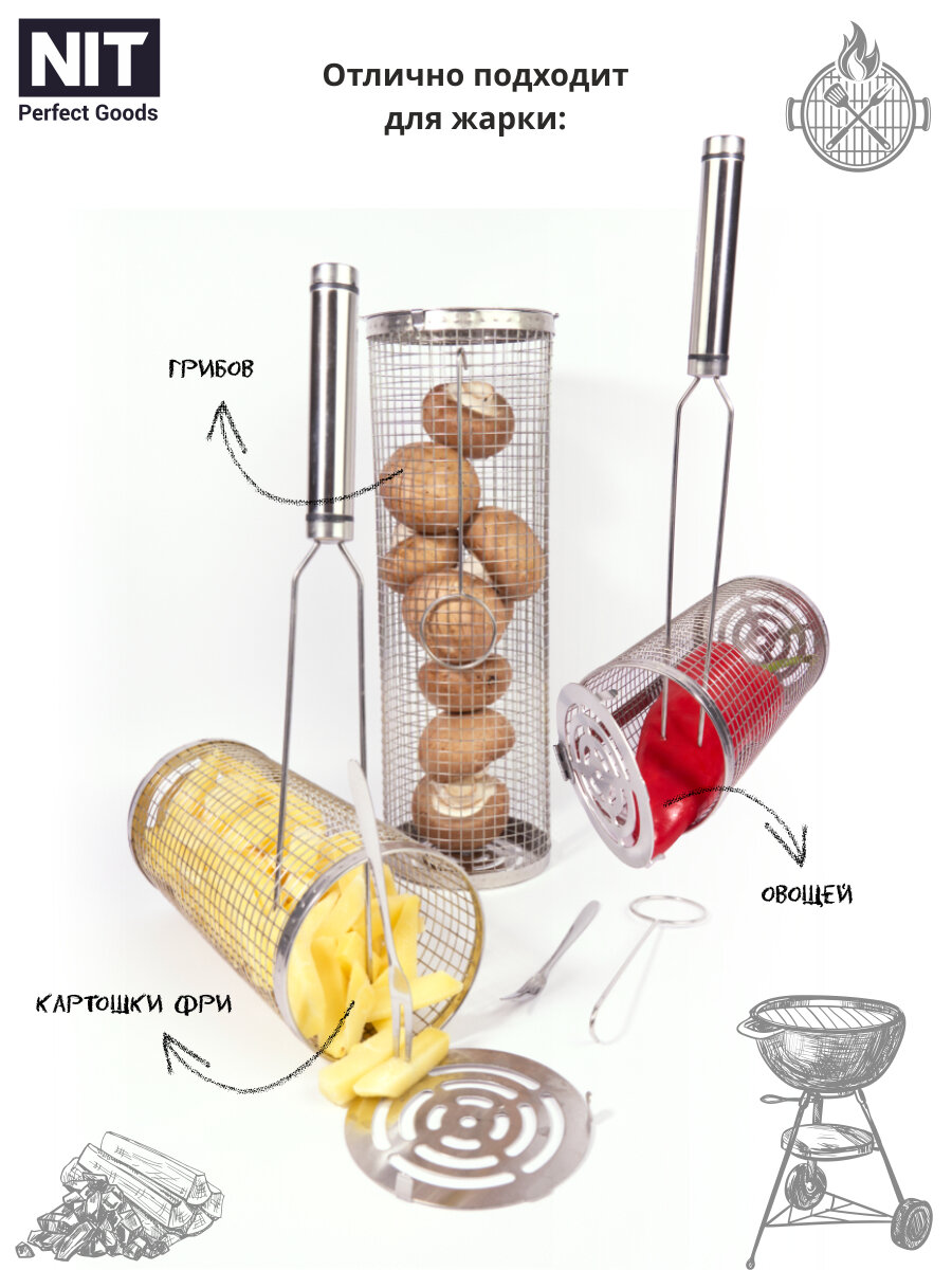 Решетка гриль круглая барбекю с деревянной ручкой NIT Perfect Goods, 20 см информация: