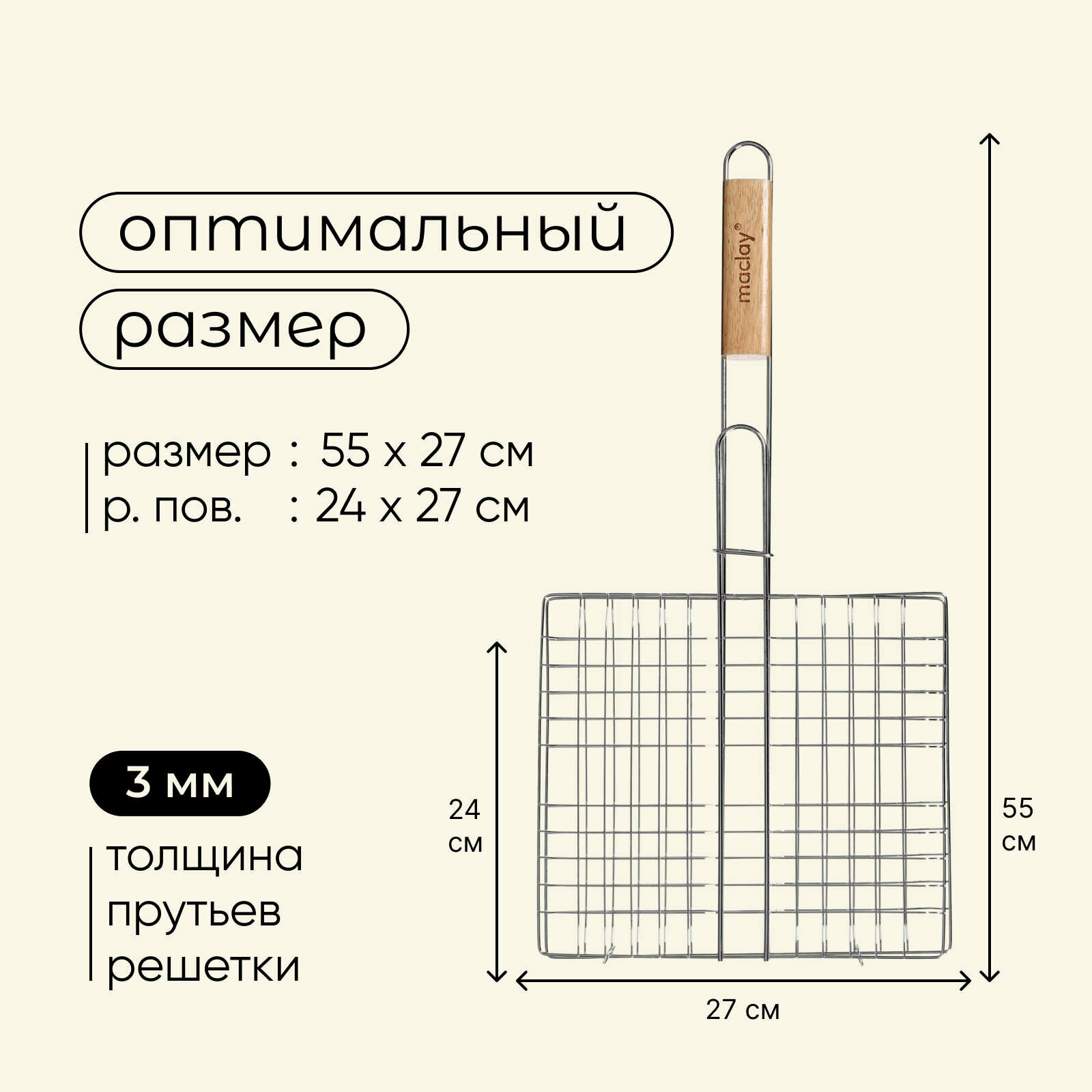 Отзывы на Решётка - гриль универсальная maclay, 24x27 см, хромированная сталь, для мангала
