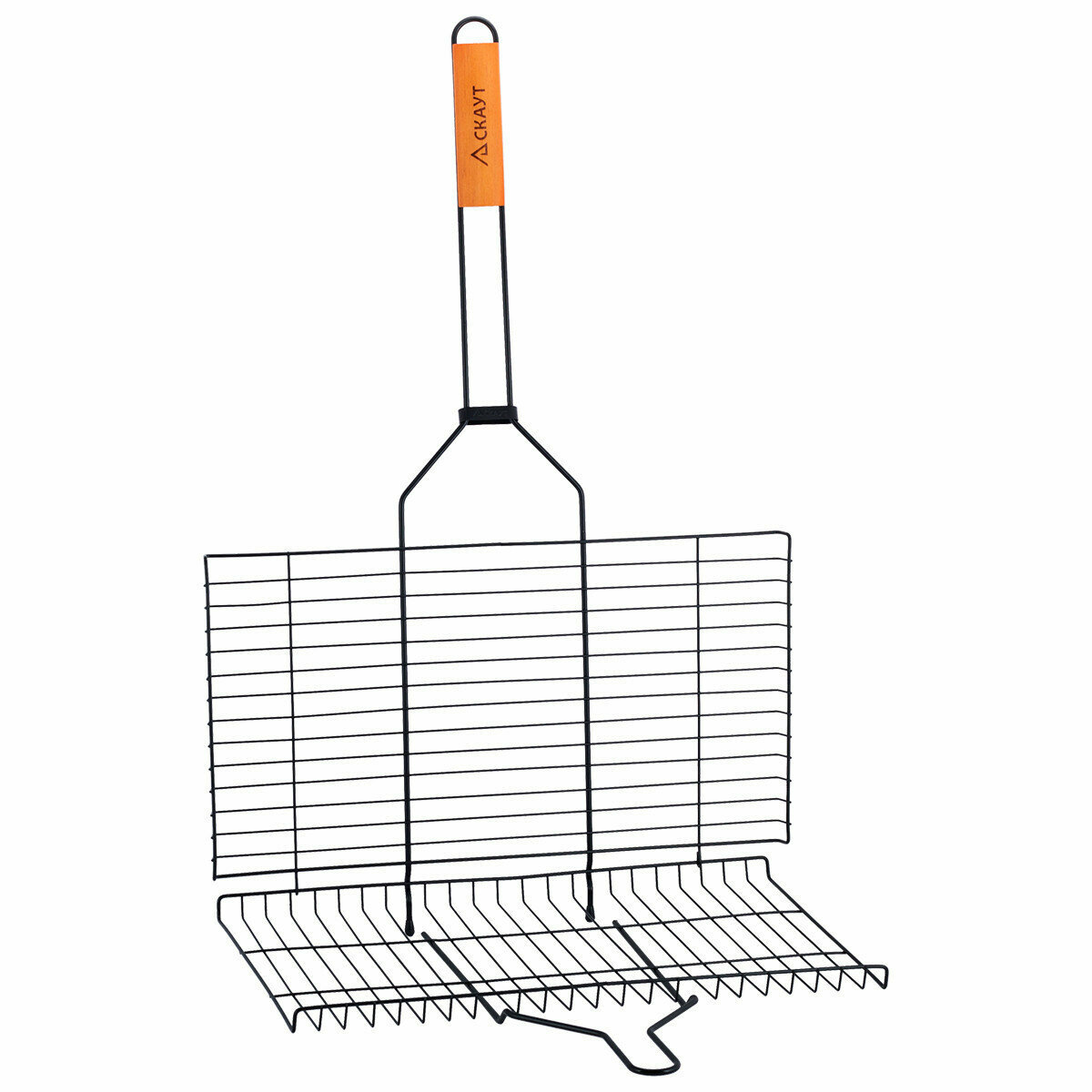 10 цен на Решетка для гриля 44,5х26х2,5 см. с антипригарным покрытием скаут СК-0714 с деревянными ручками (черный)