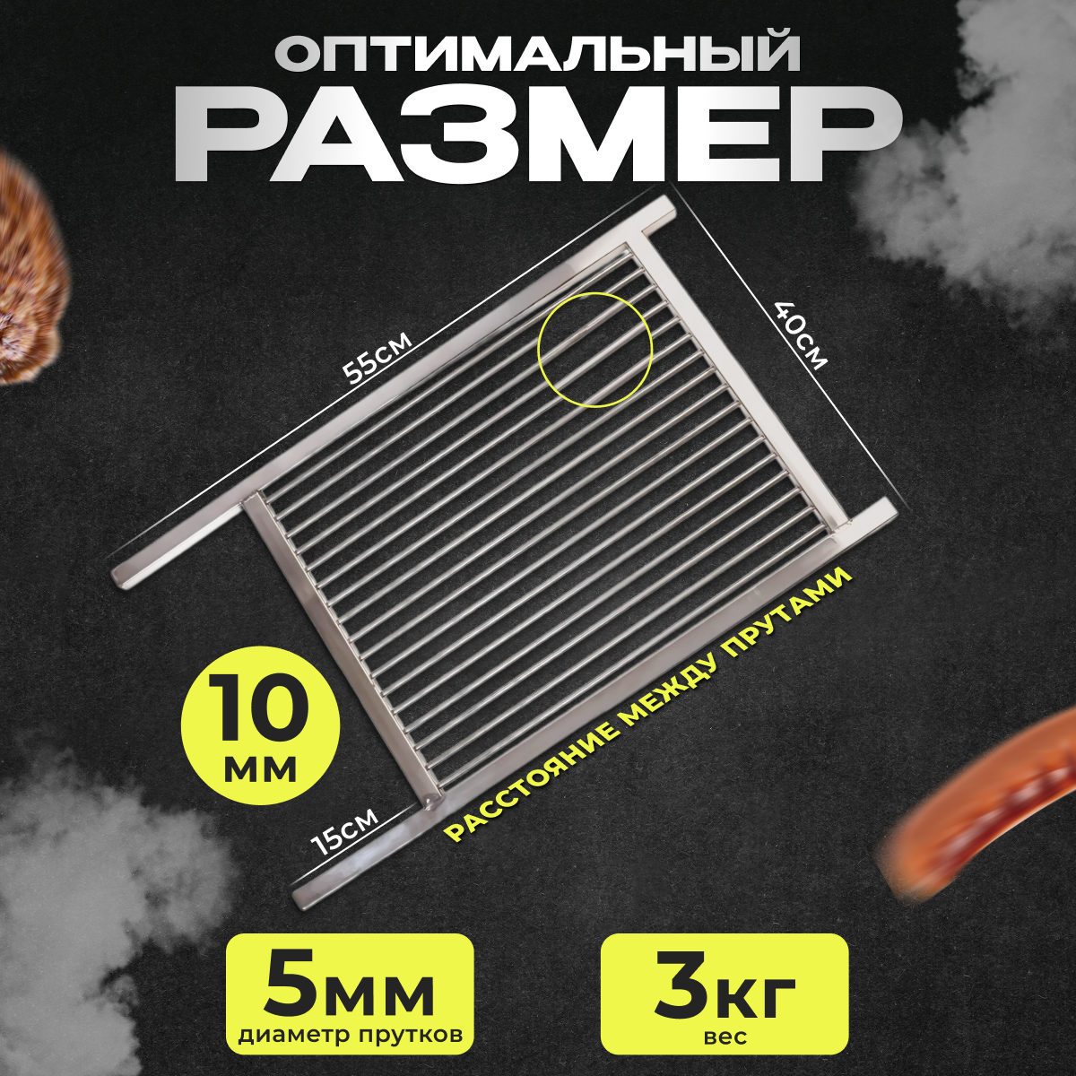 Решетка гриль из нержавейки для котлет, морепродуктов малая 40*55см 10мм между прутками информация: