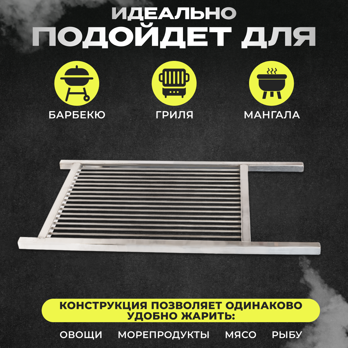 Решетка гриль из нержавейки для стейков, котлет, овощей, рыбы средняя 64*65см 10 373 ₽