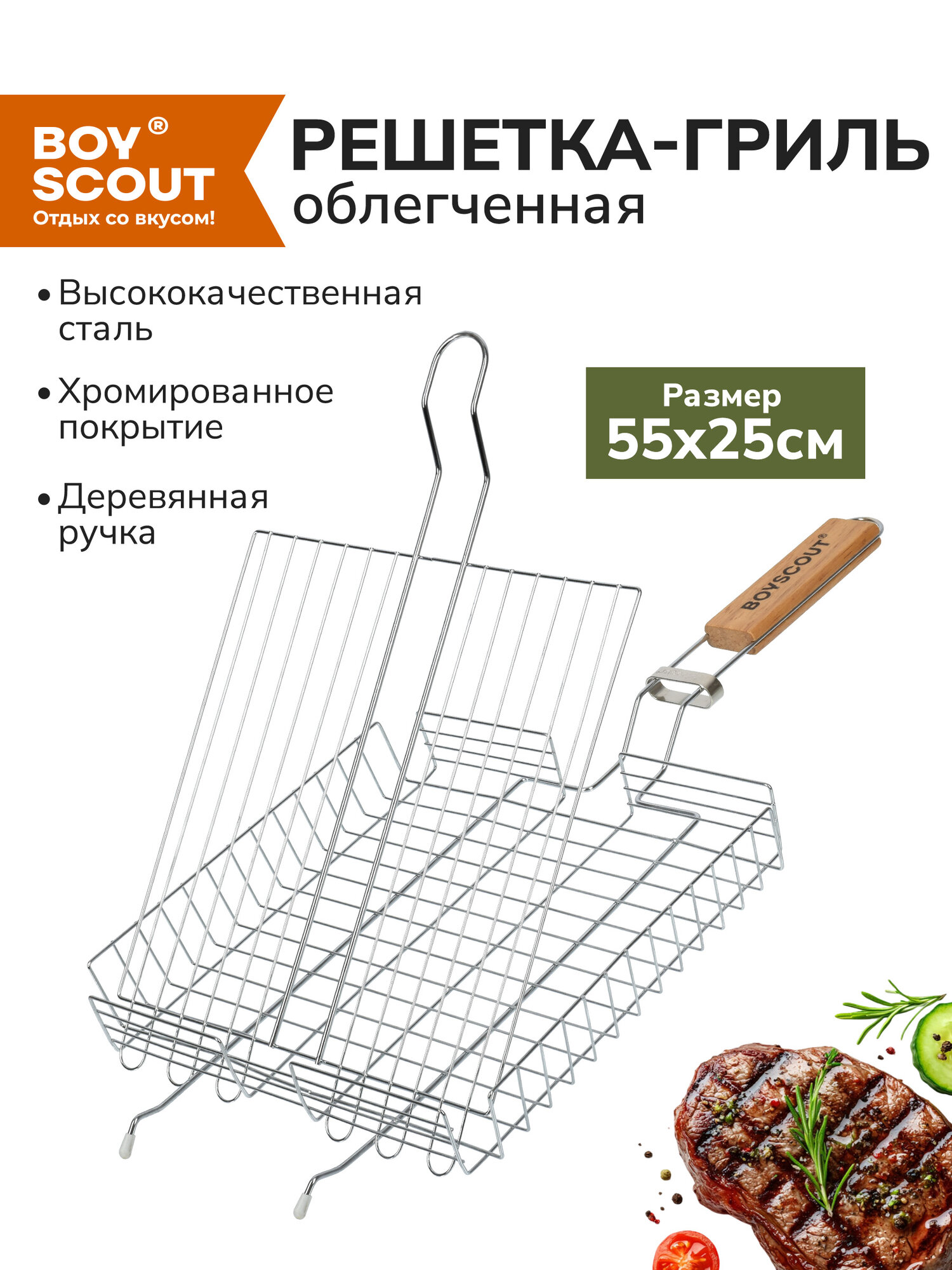 Отзывы на Решетка для мангала и гриля облегченная для туризма универсальная глубокая, 50(+5)x25x25x4 cм, BOYSCOUT