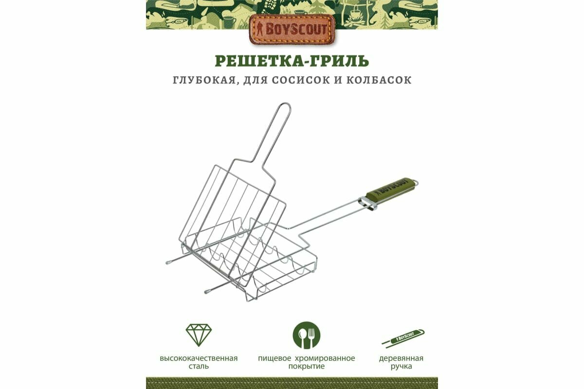 Отзывы на Решетка-гриль для сосисок и колбасок 50(+5)x21x16x2,5cм BOYSCOUT