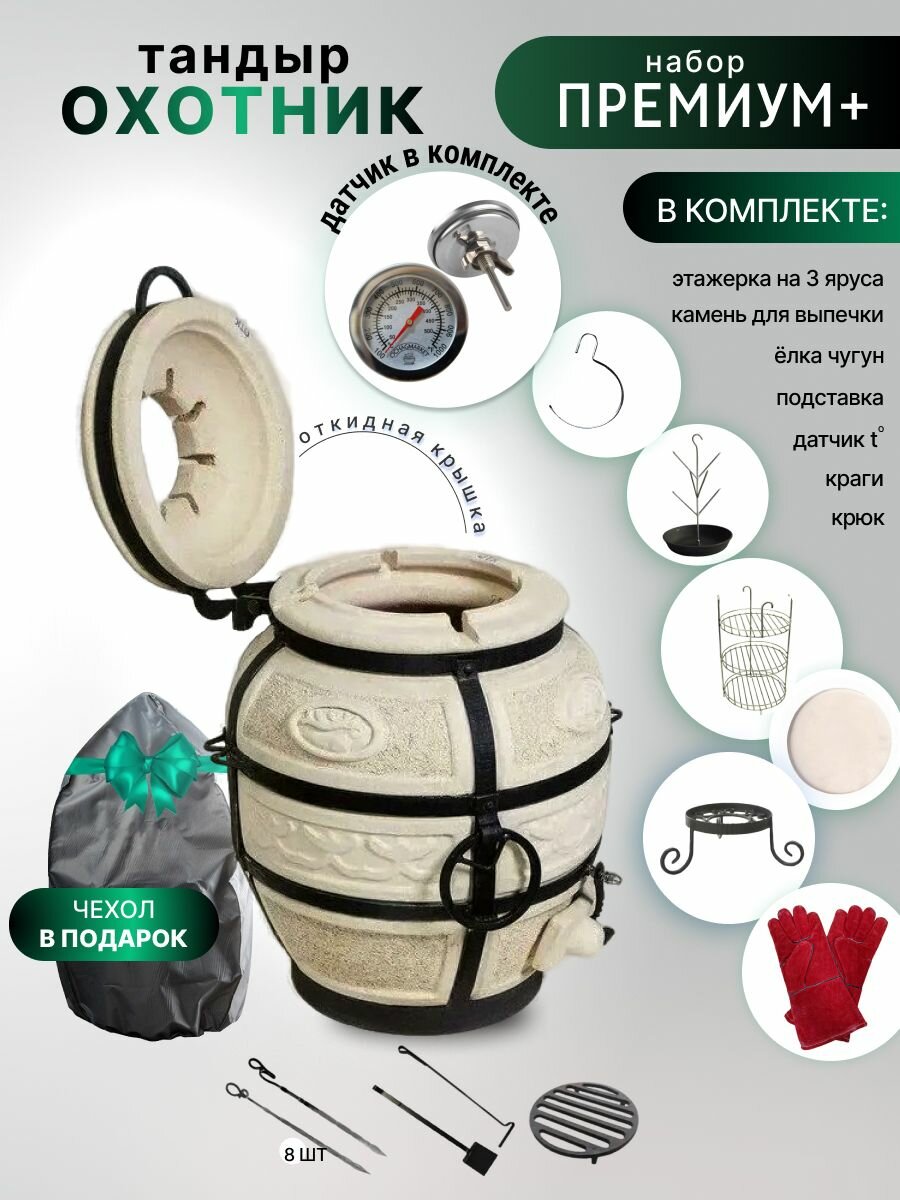 10 цен на Охотник с откидной крышкой-Комплект "Премиум+" -тандыр для дачи средний с термометром (требует установки)-40 л, Амфора.