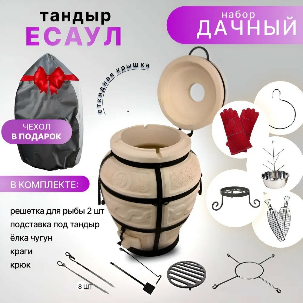 Тандыр "Есаул" Амфора с откидной крышкой, с набором аксессуаров комплект "Дачный" информация: