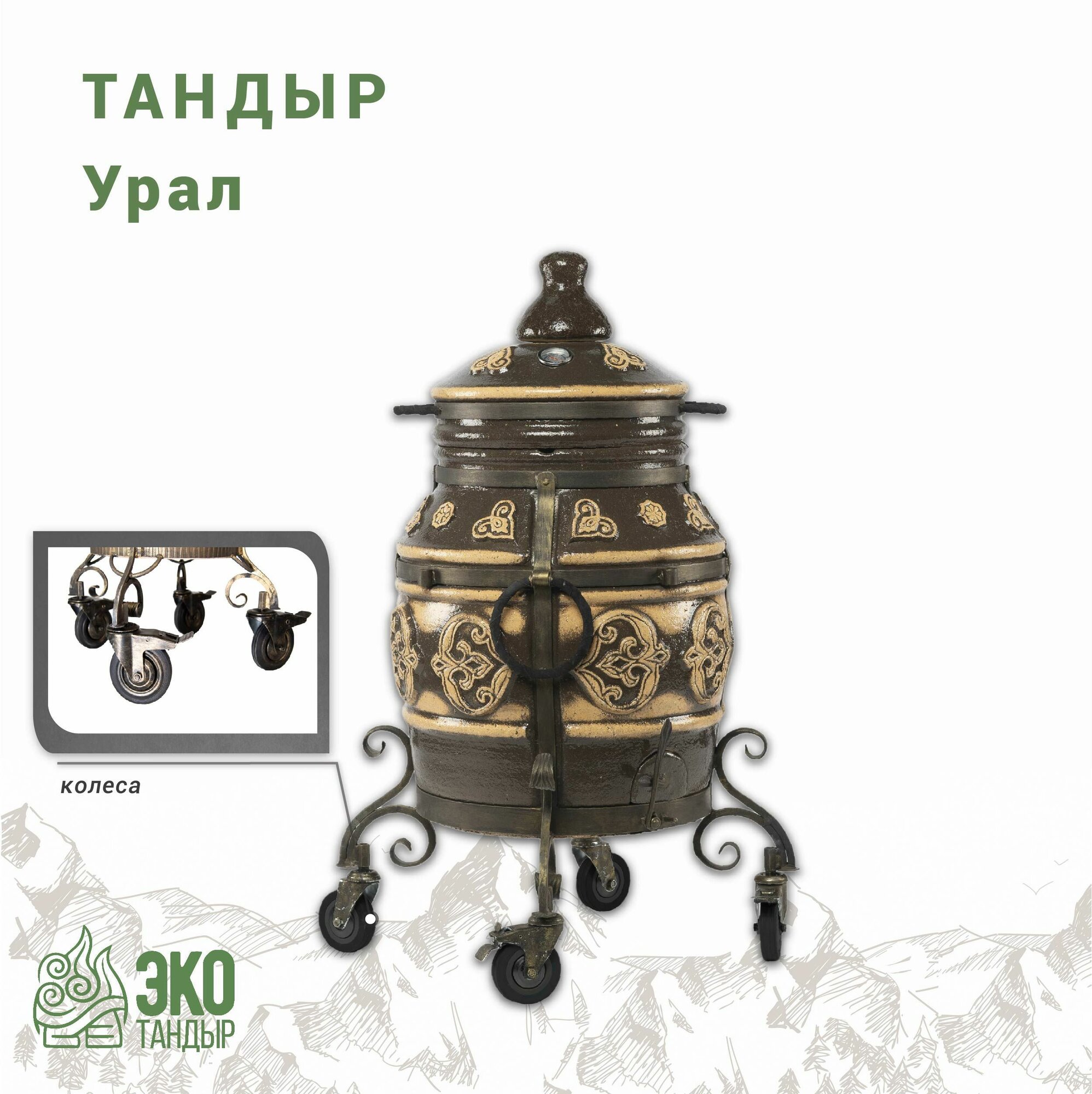 10 цен на Тандыр ЭкоТандыр Урал на колесах, черный , чехол, камень-жароотсекатель, средний тандыр от производителя