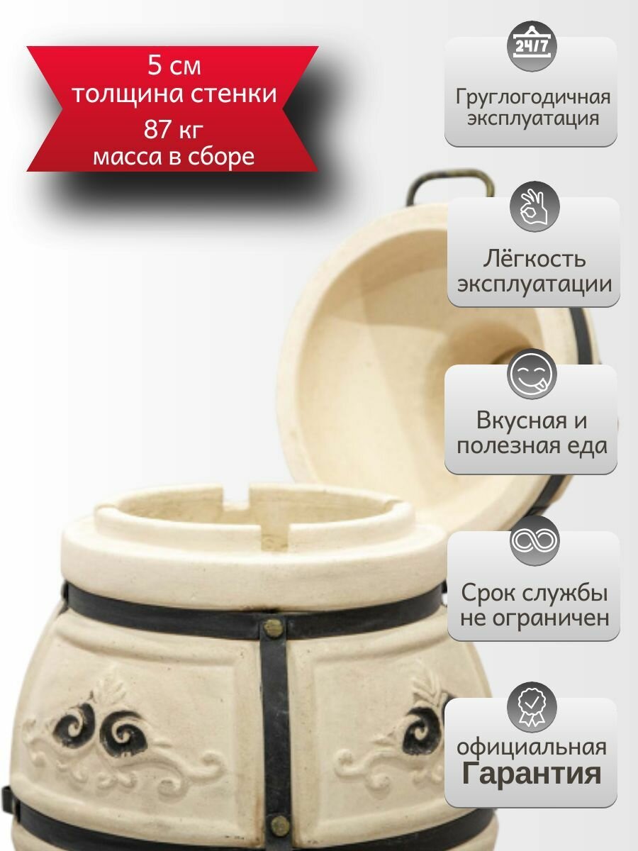 Аполлон с откидной крышкой - тандыр для дачи средний с термометром - 50л (требует установки), Технокерамика.