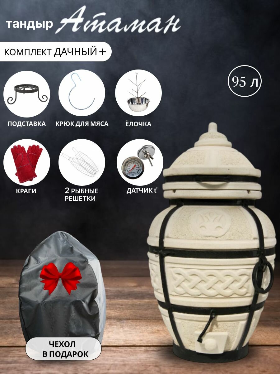 10 цен на Атаман со съемной крышкой - Комплект "Дачный+"- тандыр для дачи большой с термометром (требует установки)- 95 л, Амфора.