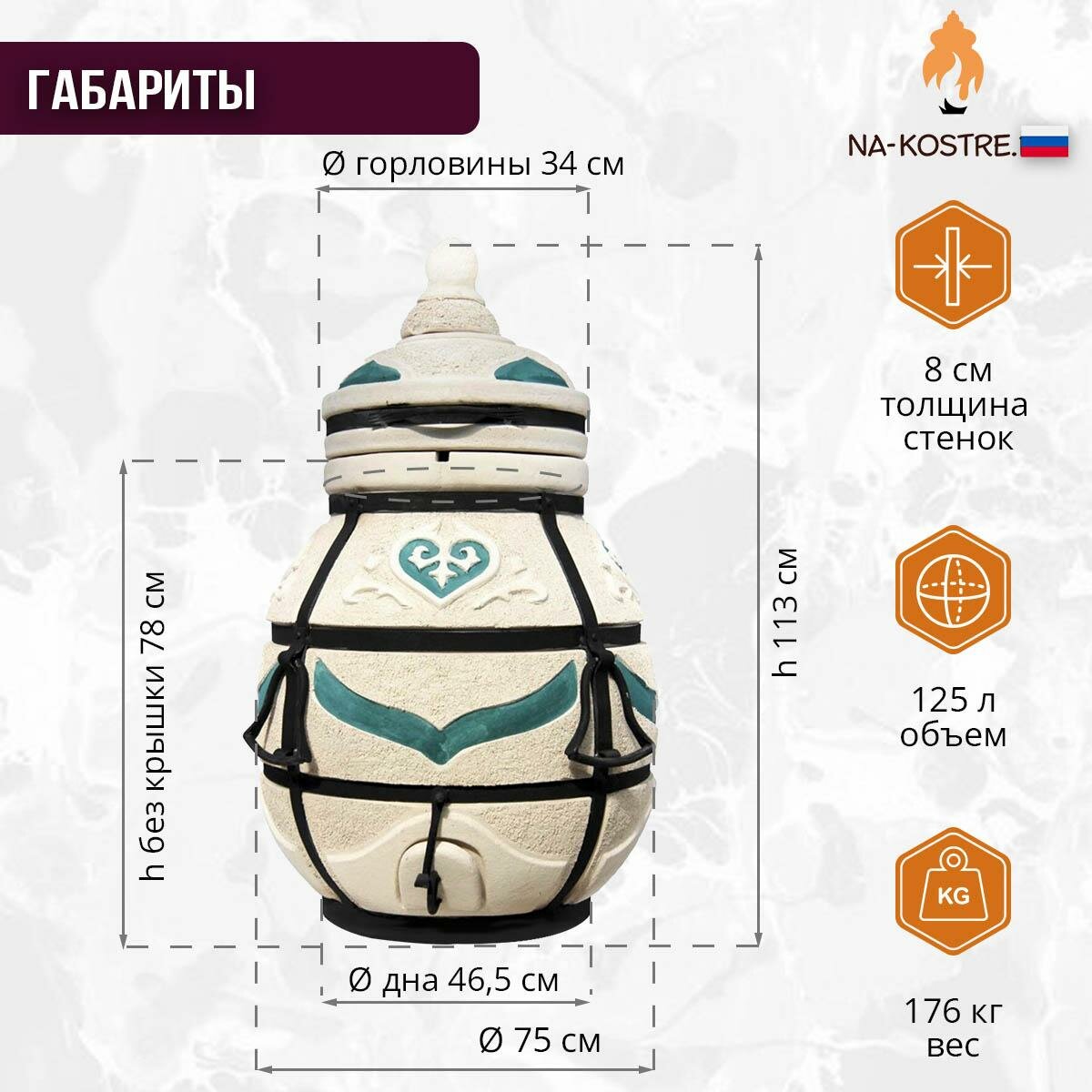 Аполлон с откидной крышкой - тандыр для дачи средний с термометром - 50л (требует установки), Технокерамика.