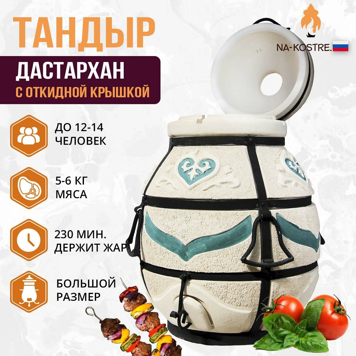 10 цен на Тандыр для дачи Дастархан с откидной крышкой + перчатки