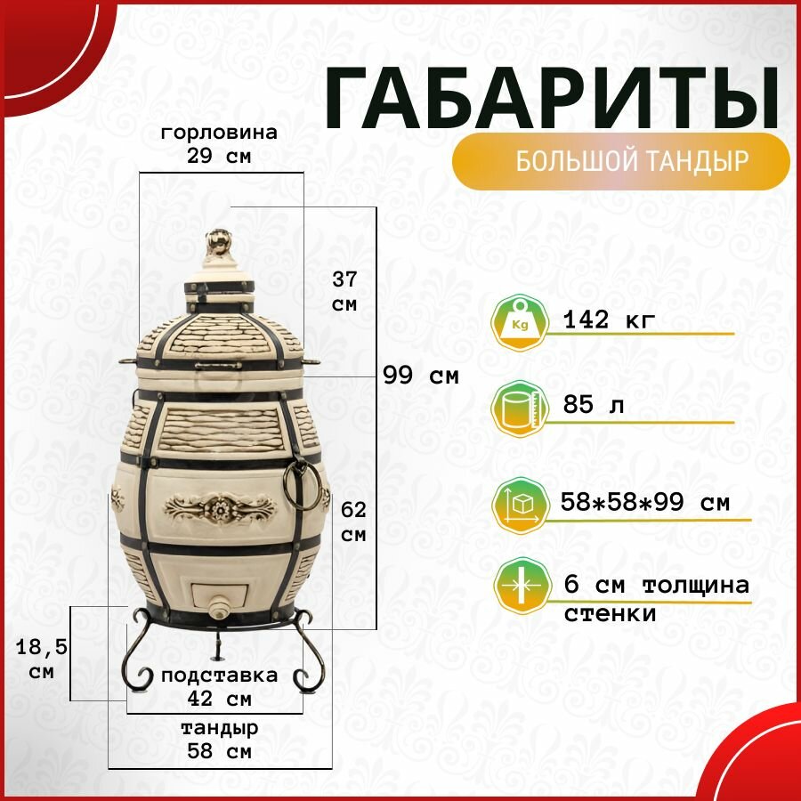 10 цен на Барс с откидной крышкой - Комплект "Max" - тандыр для дачи большой- 85 л, Технокерамика.