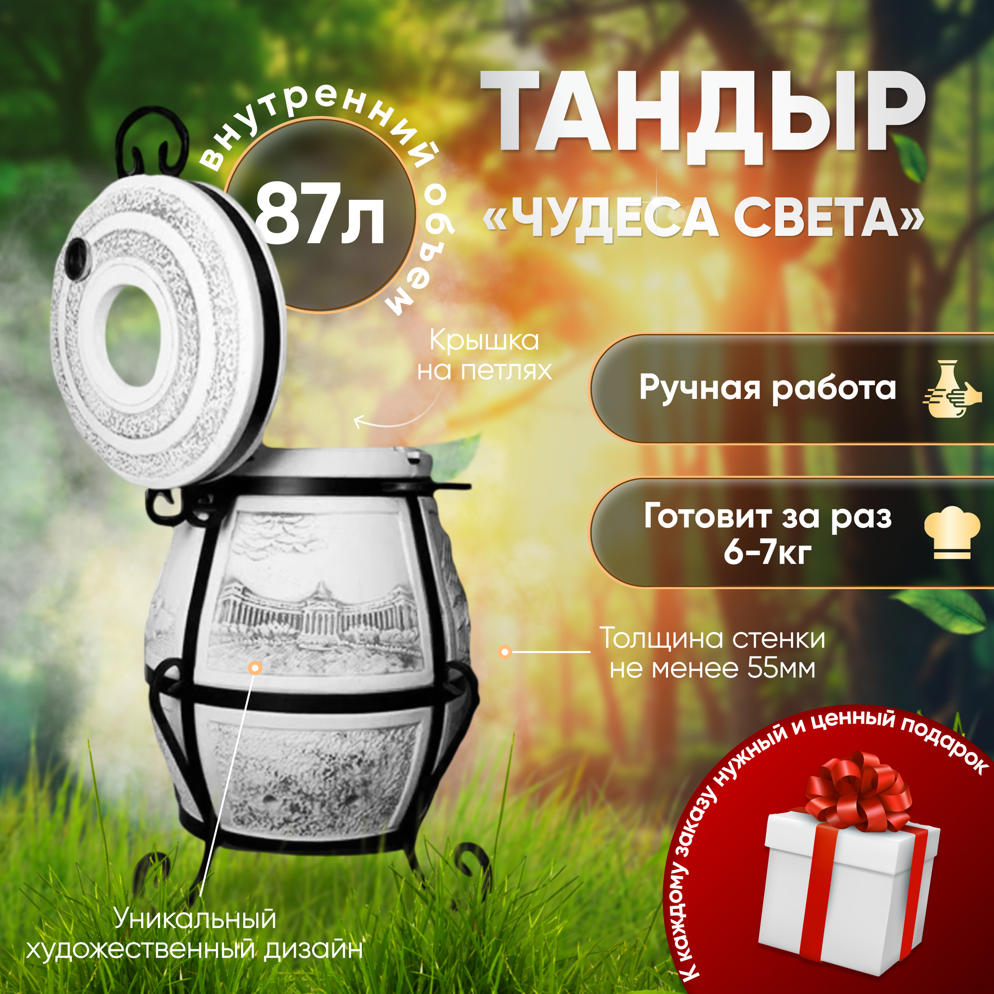 10 цен на Тандыр Гончар-Кубани "Чудеса Света", Сталь, Керамика, Шамот , Большой , Дизайнерский