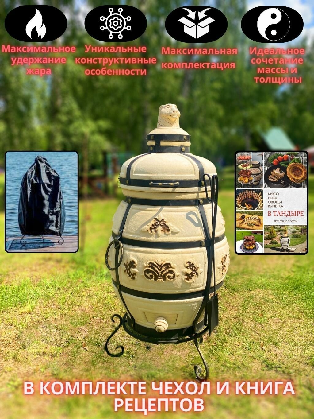 Аполлон с откидной крышкой - Комплект "Dacha" - тандыр для дачи средний - 50 л, Технокерамика.