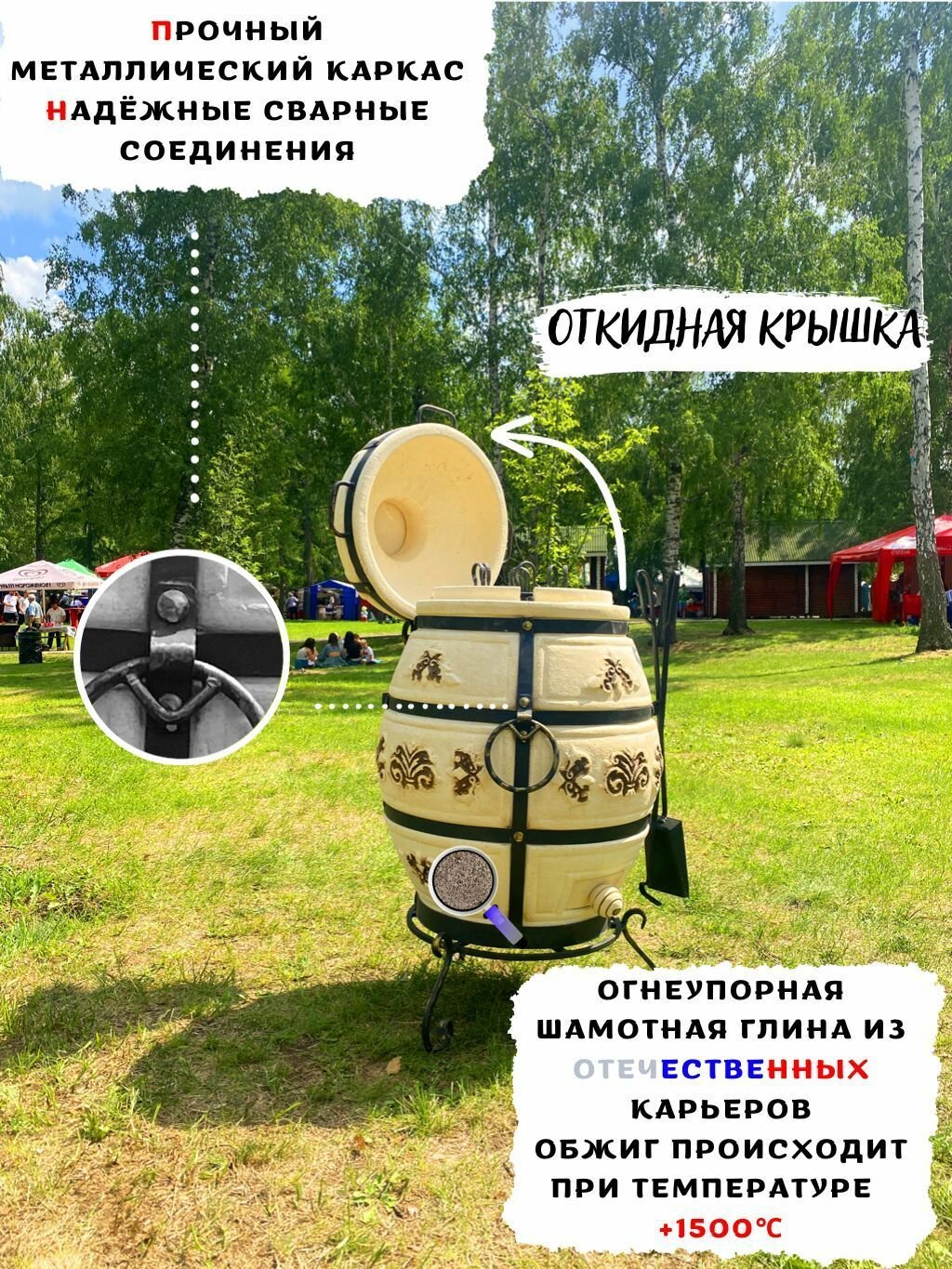 Аполлон с откидной крышкой - тандыр для дачи средний с термометром - 50л (требует установки), Технокерамика.