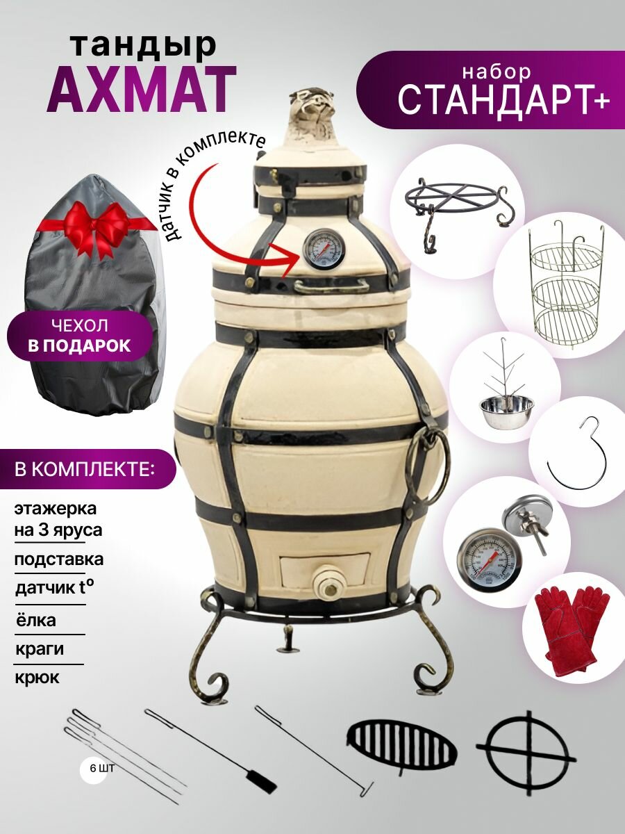 10 цен на Ахмат с откидной крышкой - Комплект "Стандарт+" - тандыр для дачи маленький с термометром (требует установки)- 30л.