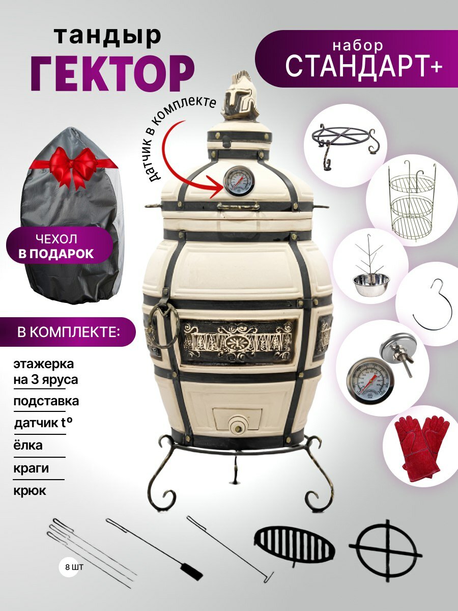 10 цен на Гектор с откидной крышкой - Комплект "Стандарт+" - тандыр для дачи большой с термометром (требует установки) - 75 л.
