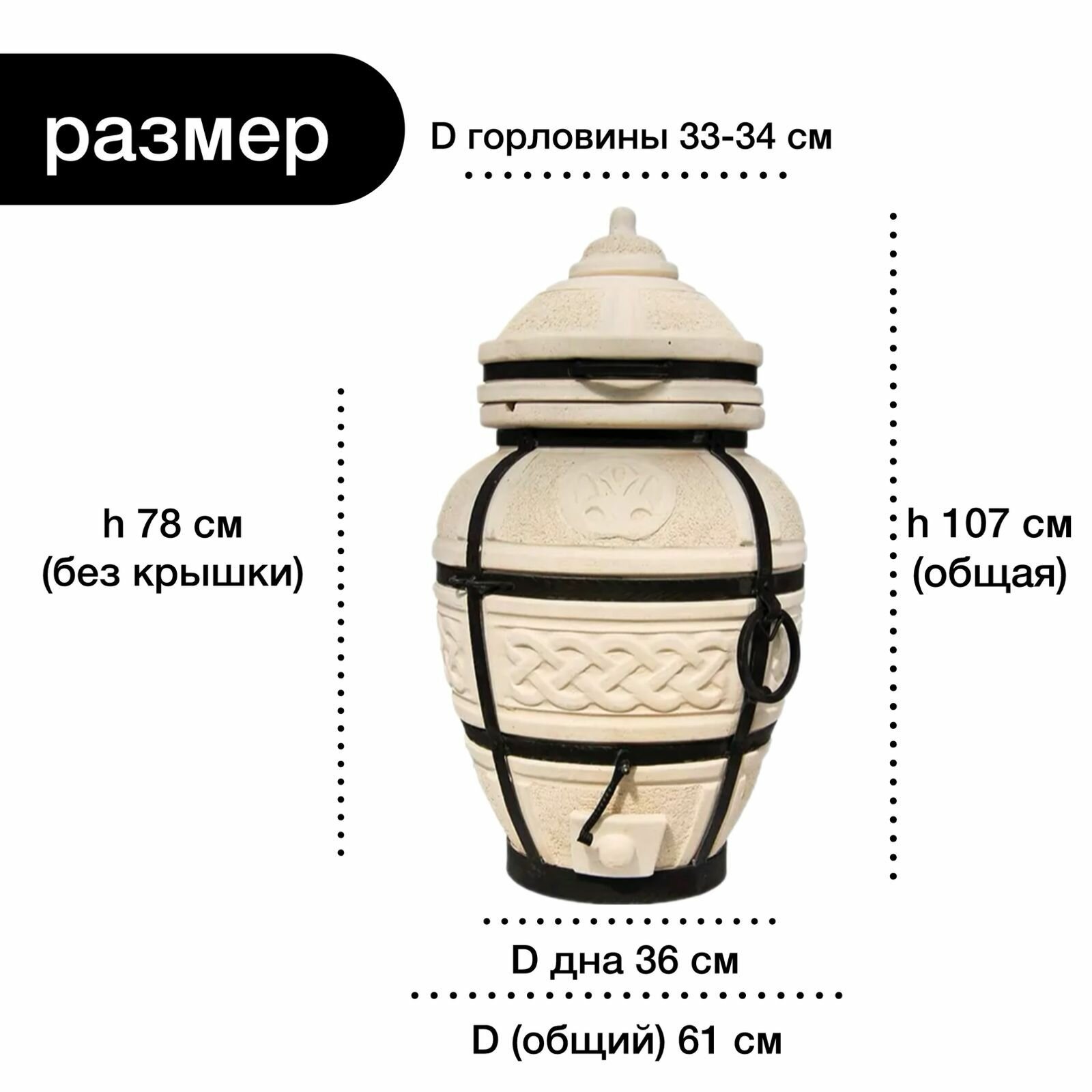 Атаман - тандыр для дачи большой, с термометром (требует установки) - 95л, Amfora. информация: