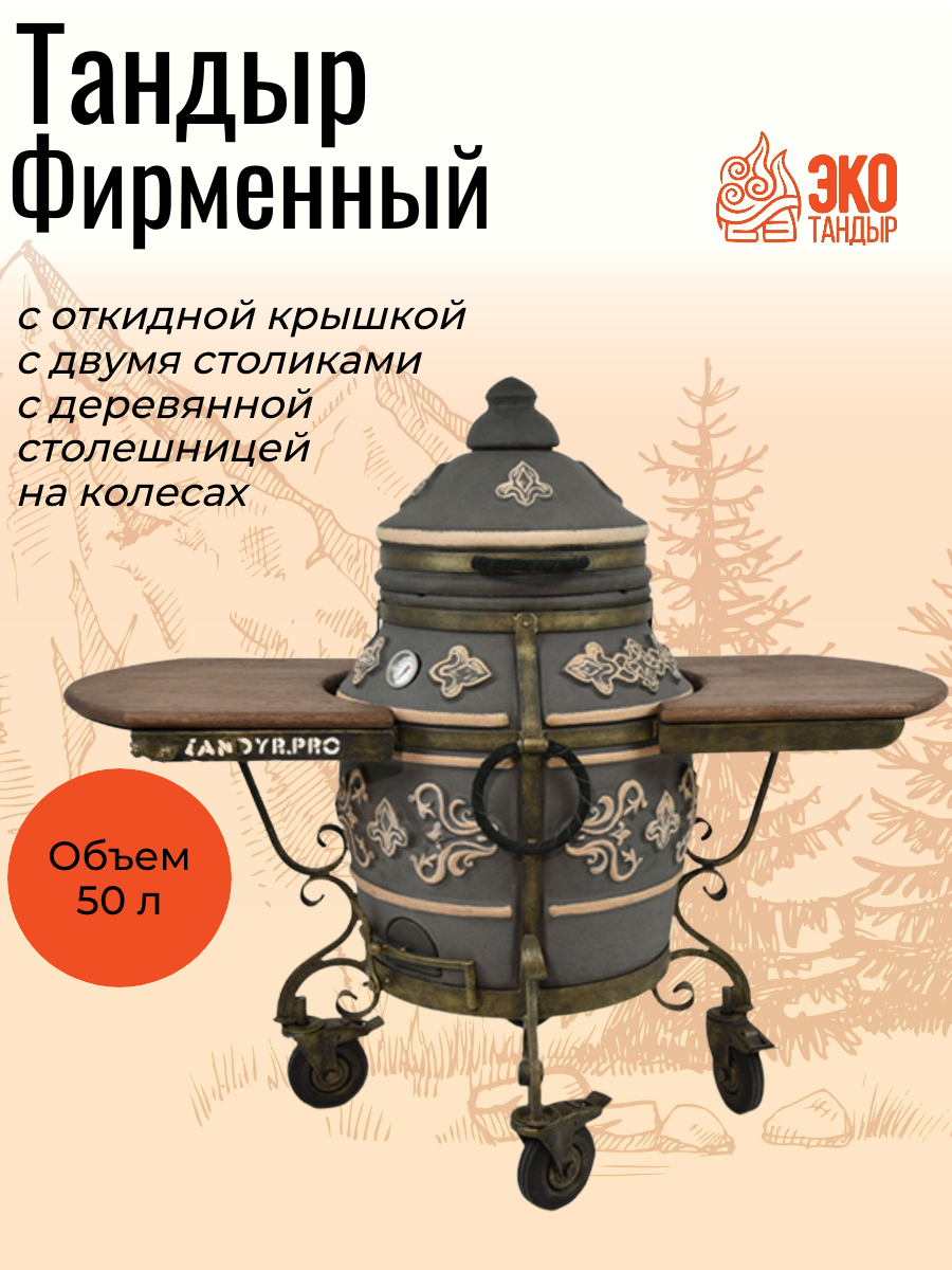 10 цен на Тандыр Фирменный с откидной крышкой, с двумя столиками с деревянной столешницей, на колесах, цвет графит
