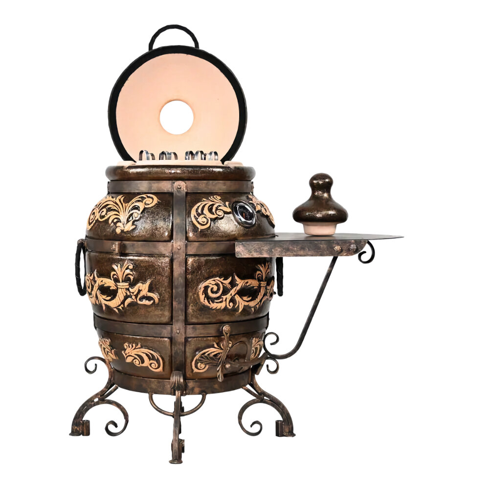 Аполлон с откидной крышкой - тандыр для дачи средний с термометром - 50л (требует установки), Технокерамика.