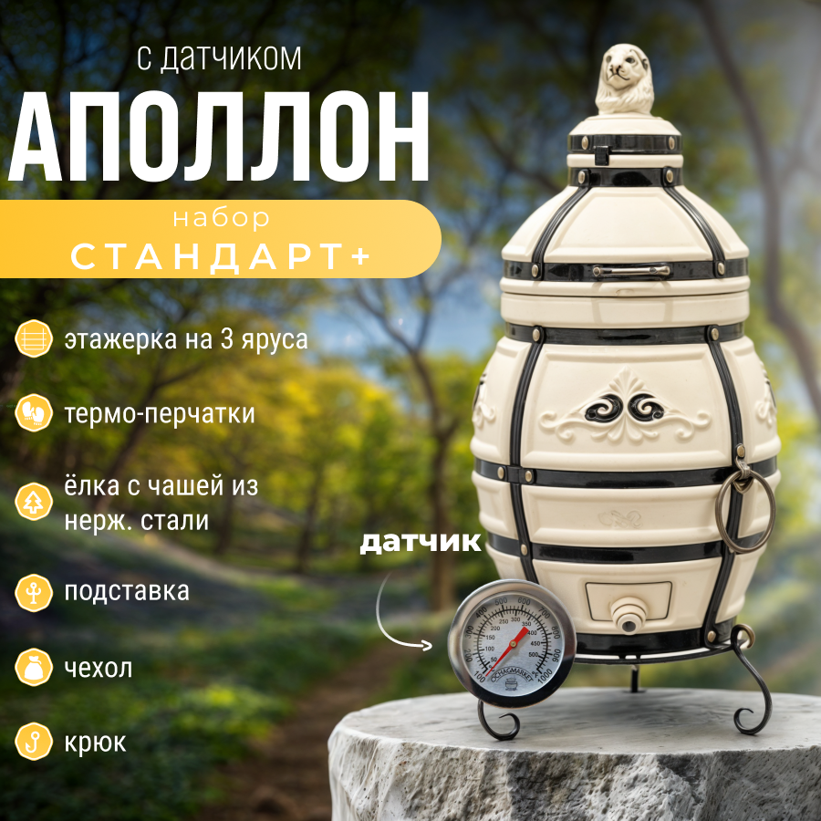 10 цен на Аполлон с откидной крышкой - Комплект "Стандарт+" -тандыр средний с термометром (требует установки)-50 л, Технокерамика.