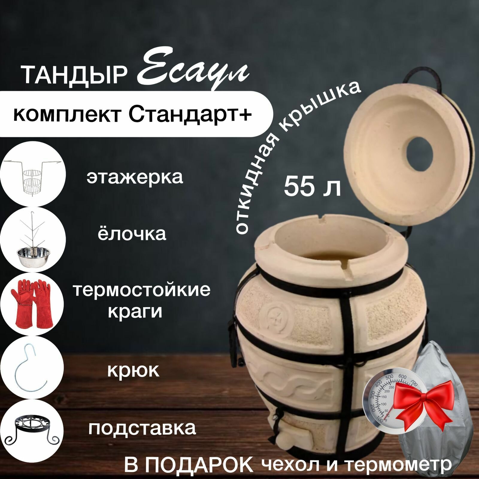 Есаул с откидной крышкой - Комплект "Стандарт+" - тандыр средний с термометром (требует установки) - 55 л, Амфора. информация:
