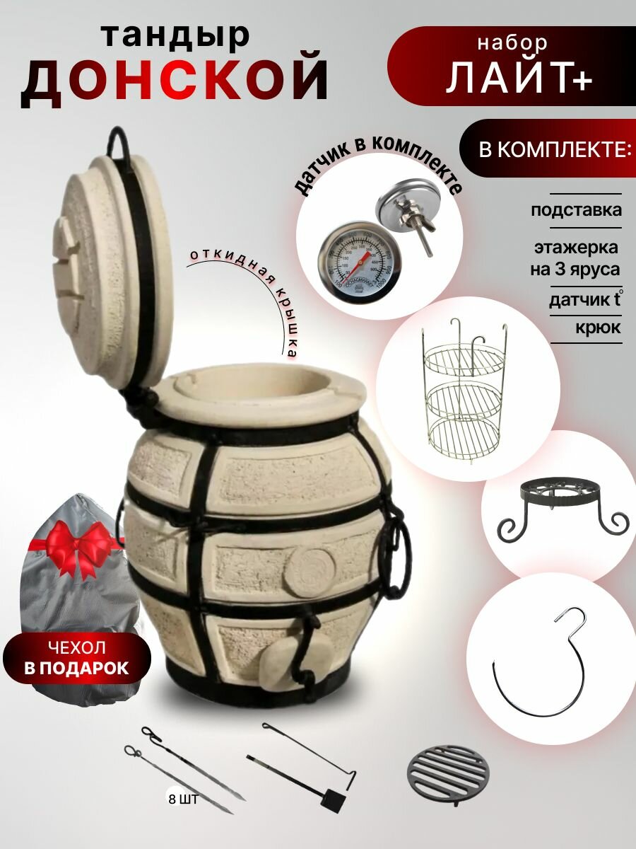 10 цен на Донской с откидной крышкой-Комплект "Лайт+" -тандыр для дачи маленький с термометром (требует установки) - 30 л, Амфора.