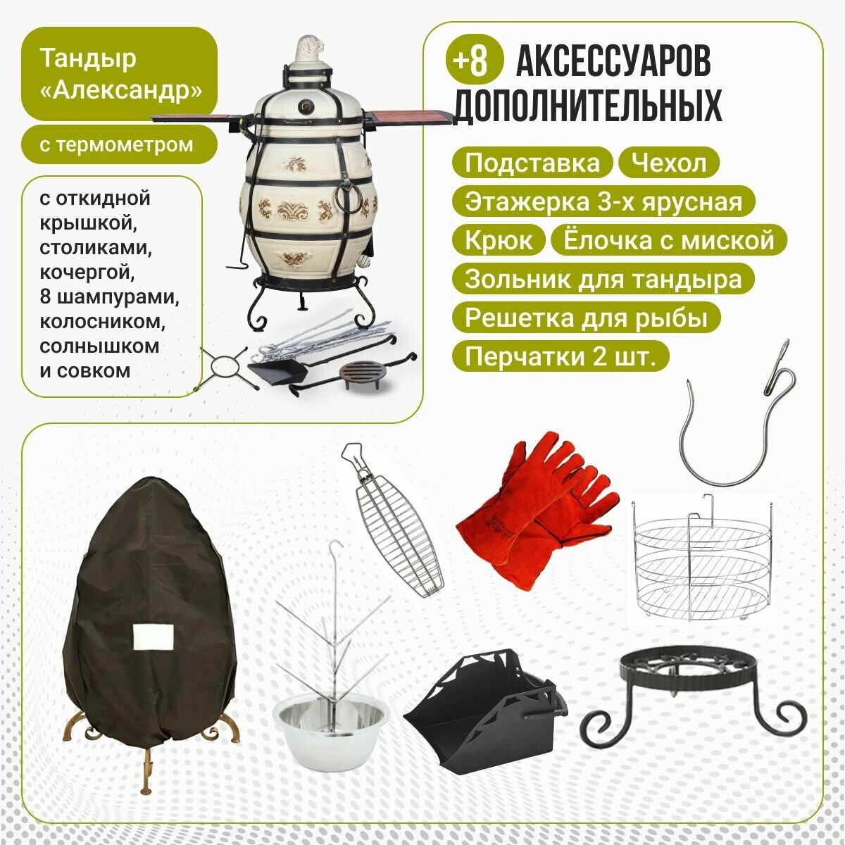 10 цен на Набор "Стандарт плюс": Тандыр "Александр" с откидной крышкой, со столиками, с термометром + аксессуары