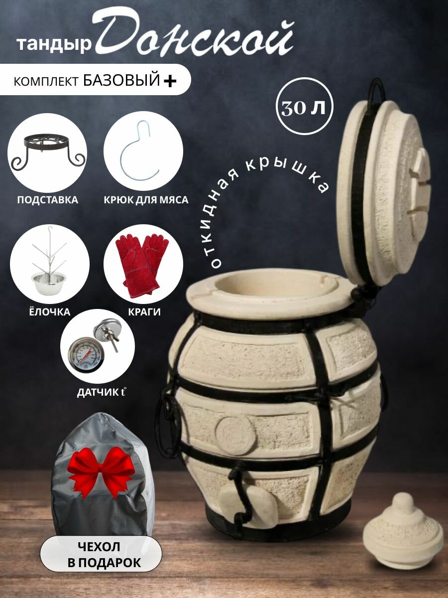 10 цен на Донской с откидной крышкой - Комплект "Базовый+"- тандыр маленький с термометром (требует установки)- 30 л, Амфора.