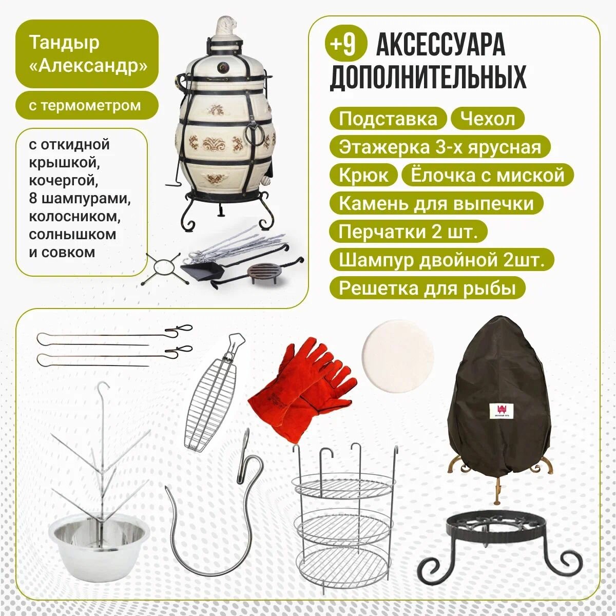Набор "Премиум": Тандыр Александр с откидной крышкой, с термометром + аксессуары 44 000 ₽