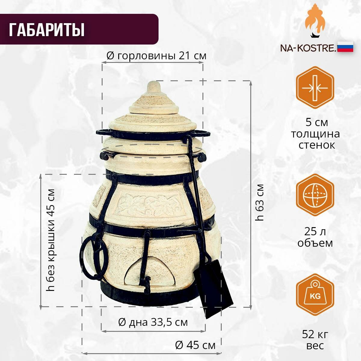 Тандыр Сармат Кочевник с откидной крышкой (Амфора) + чехол и перчатки информация: