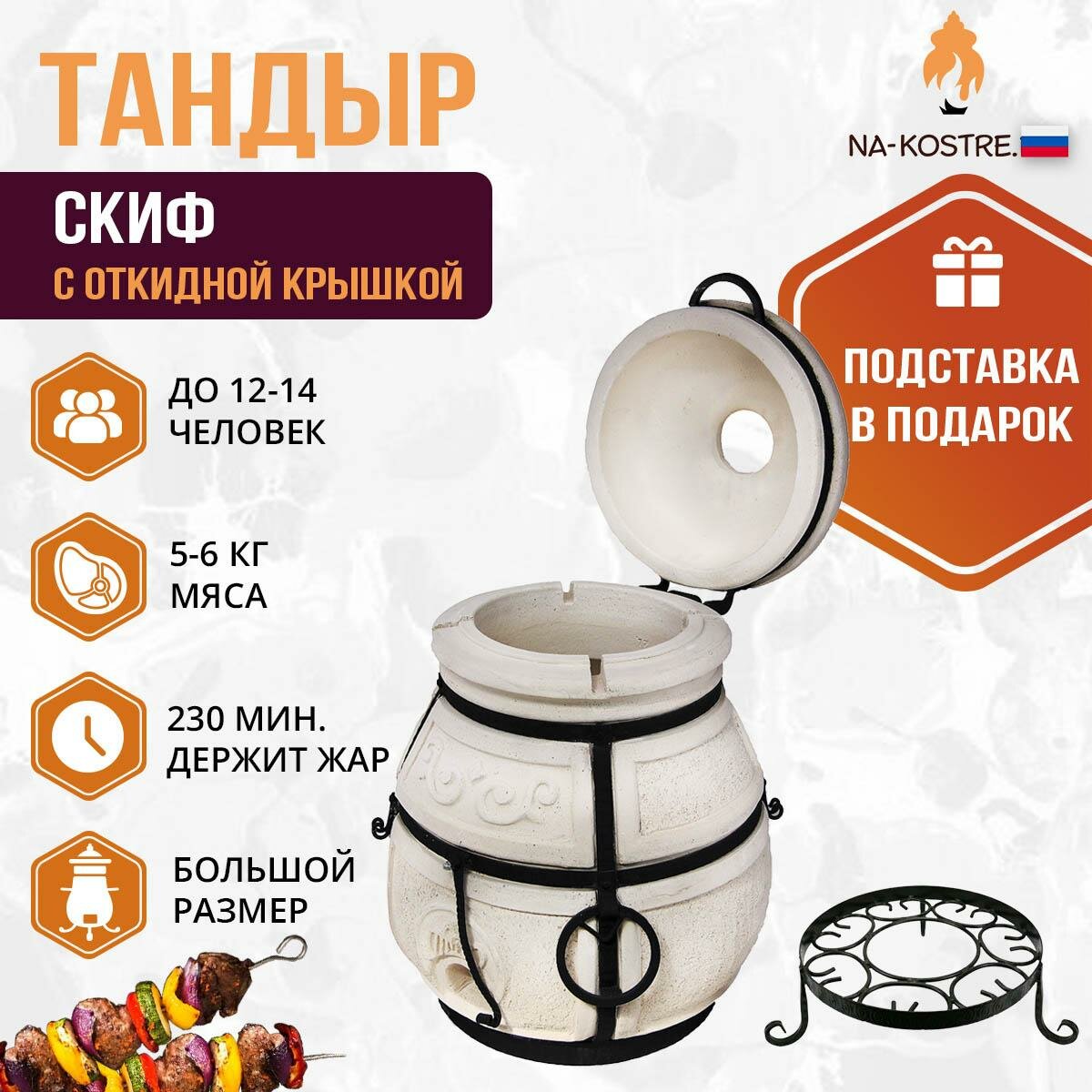 Комплект тандыр Скиф с откидной крышкой Амфора + подставка информация: