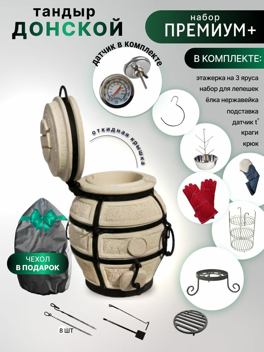 10 цен на Донской с откидной крышкой - Комплект "Премиум+" - тандыр маленький с термометром (требует установки) - 30 л, Амфора.