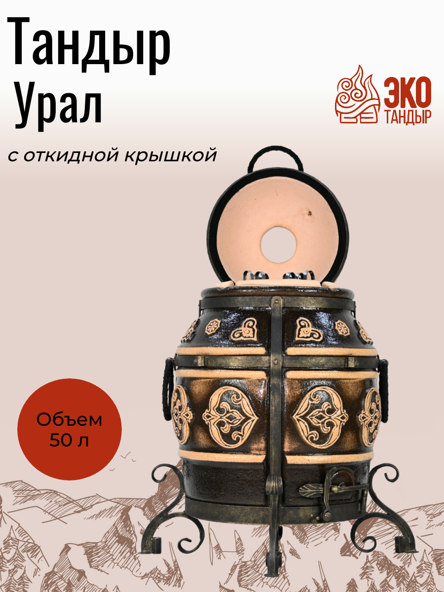 10 цен на Тандыр ЭкоТандыр Урал с откидной крышкой, цвет черный, глянцевая глазурь / средний тандыр для семьи