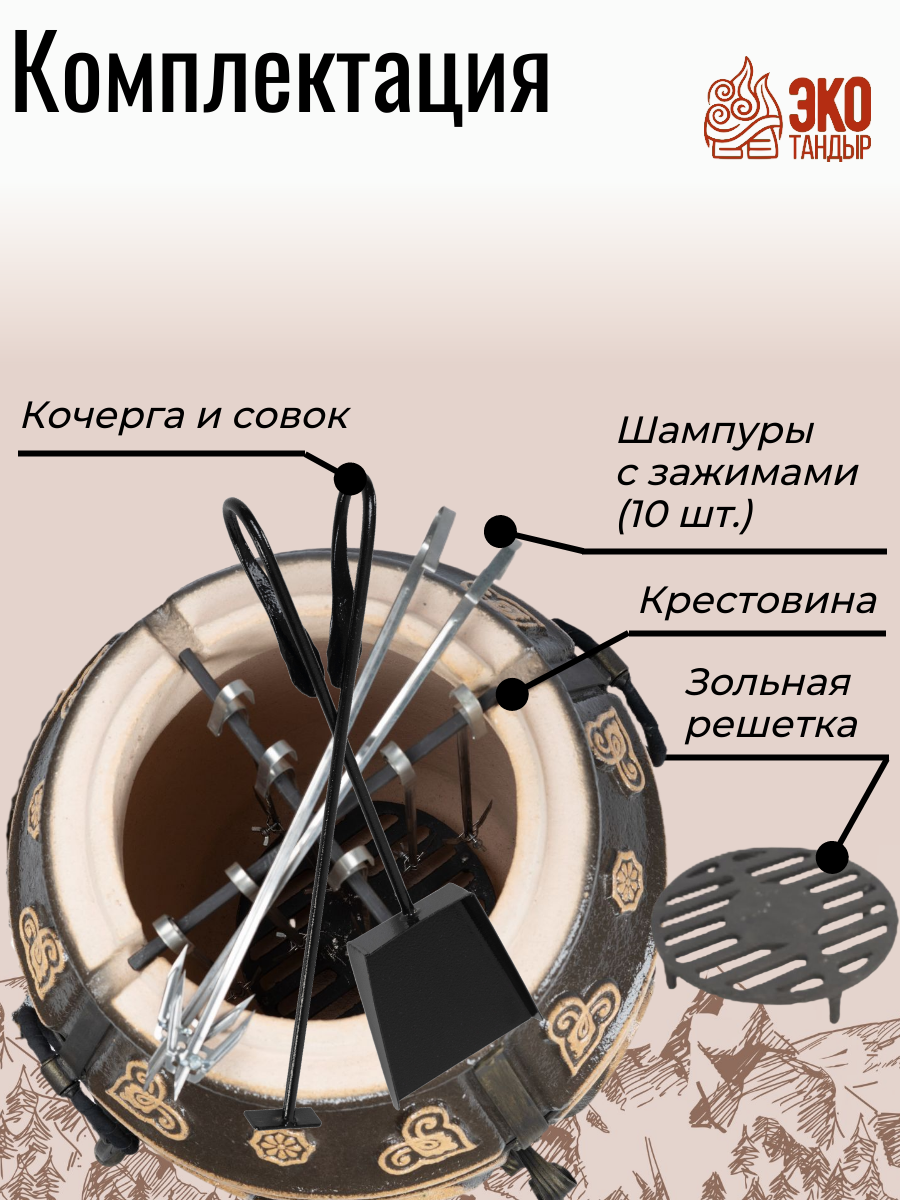 Тандыр ЭкоТандыр Урал съемная крышка, цвет слоновая кость / чехол, сборник рецептов в подарок 54 340 ₽