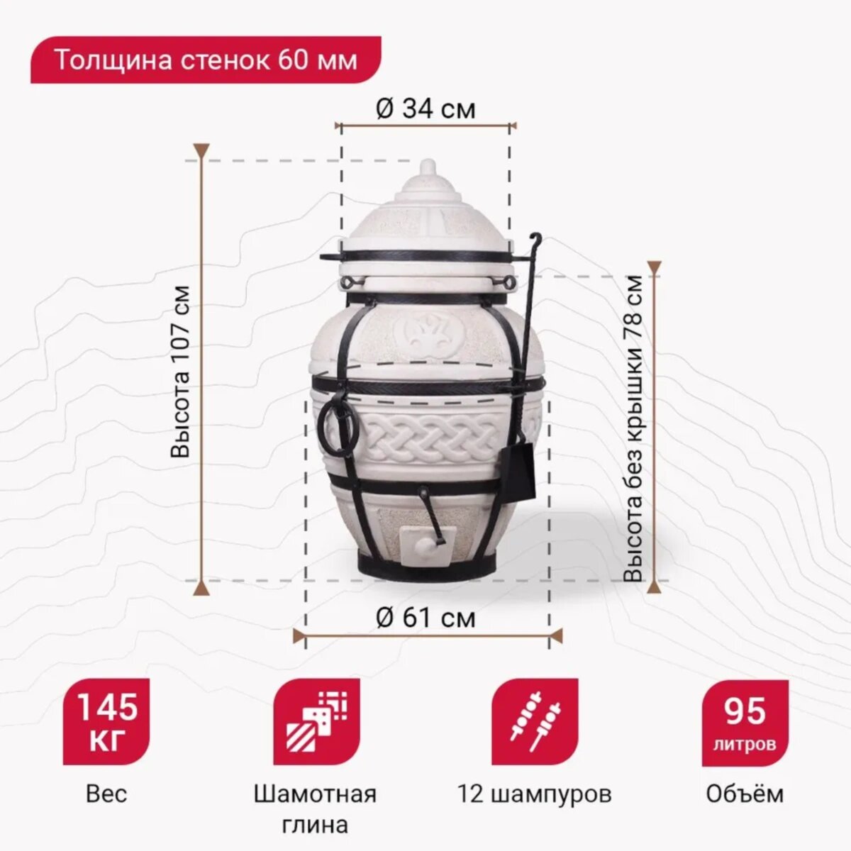Тандыр Амфора "Сармат" Атаман, дровяной, с откидной крышкой, толщина стенок 6 см, объем 95 л информация: