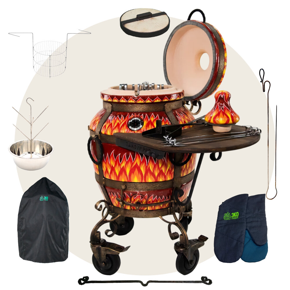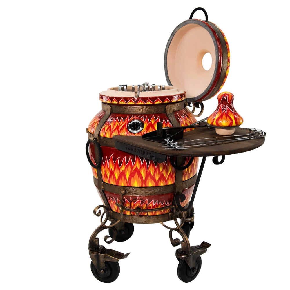 10 цен на Комплект тандыр "ЭКОтандыр-Огненный" с откидной крышкой и столиком, на колёсах