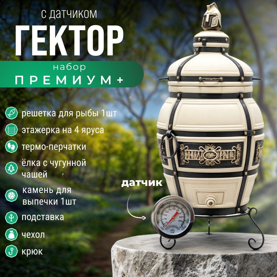 Гектор с откидной крышкой - Комплект "Премиум+" - тандыр большой с термометром (требует устновки) - 75 л, Технокерамика. информация: